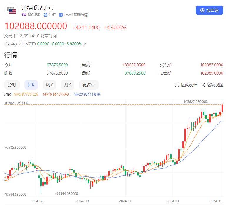 前段时间,它的价格又在一路走高。尤其是今年,自从特朗普胜选之后,它的价格大涨,涨幅直逼40%。直到12月5日,一枚比特币的价格,首次突破了10万美元。