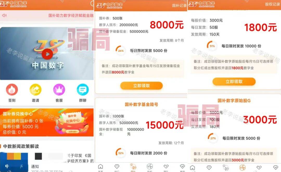 冒充国家部门,推广兜售虚假的“国补数字股权”、“基金”。以高额回报吸引参与者投资认购。