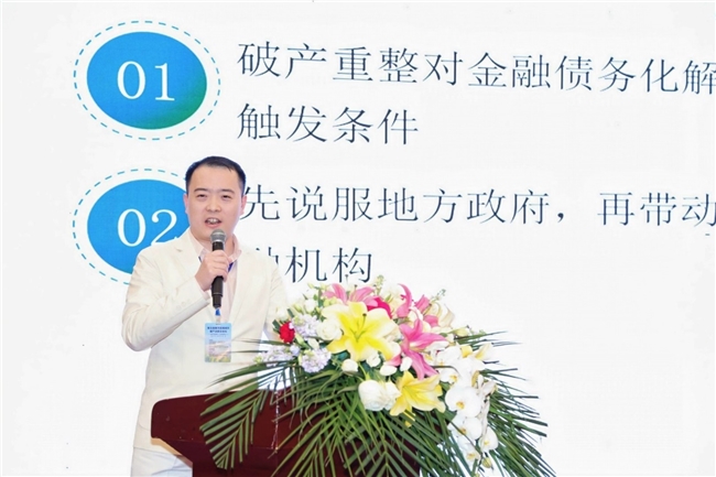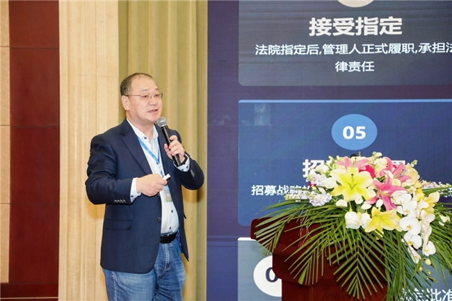 企业重整与救助专家、中南财经政法大学教授郑成新分享的题目为《破解企业重整的堰塞湖》,其以担任中核钛白、我国第一家问题金融机构等企业重组顾问的经历,说明破解企业重整的堰塞湖需要的不仅仅是法律制度,还需要政府、法院、管理人等多方努力。