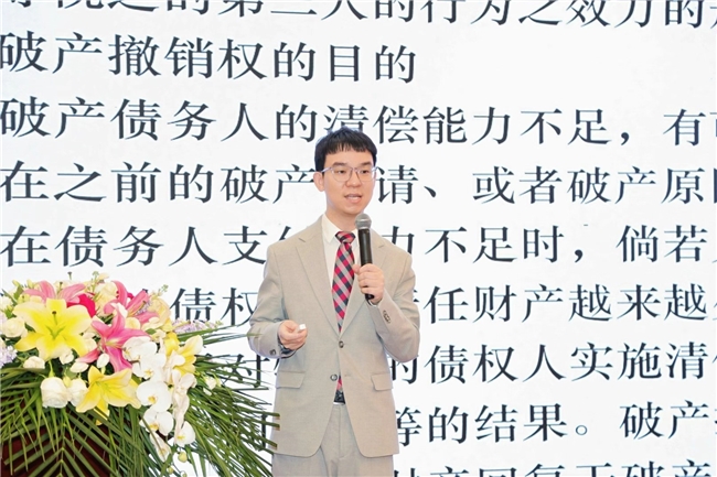 北京航空航天大学教授刘颖分享的题目为《企业破产法修订背景下的撤销权制度》,其从破产撤销权概述、对欺诈行为的破产撤销权、对偏颇行为的破产撤销权三个方面,对企业破产法修订背景下的撤销权制度改革提出了自己的建议。