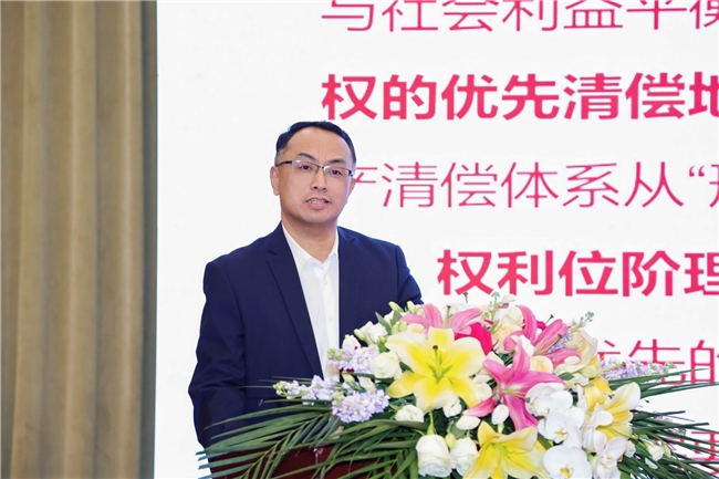 山西财经大学法学院教授、博导、山西省法学会破产重组研究会会长郗伟明演讲的主题是《破产清偿中消费者债权优先与劣后债权制度的法理逻辑》,郗教授从现行规范与实践困难,修订草案的制度突破与争议焦点,对债权人群体利益格局的影响,对破产程序运行的实践效应等多个方面解读了消费者债权清偿的法理逻辑。