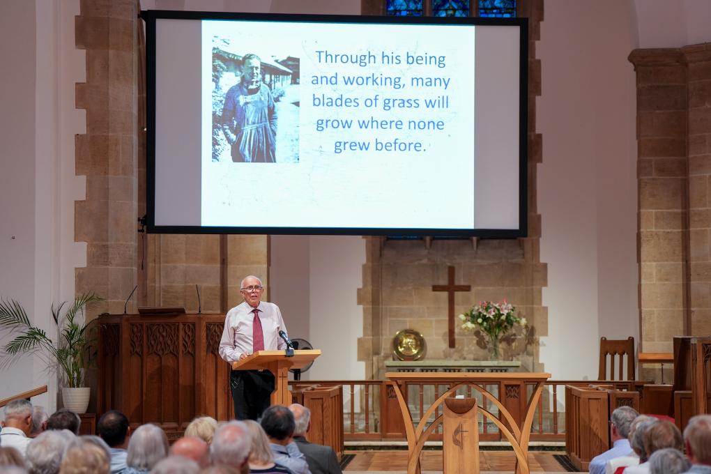 7月22日晚,英国赫特福德郡哈彭登镇,何克逝世80周年纪念活动现场,座无虚席。屏幕上,一帧帧画面定格下何克在中国的身影与足迹。讲台上,何克的外甥马克·艾尔温·托马斯深情讲述80多年前的往事。