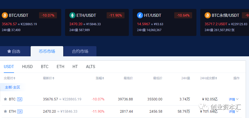北京时间5月28日下午,虚拟货币再次迎来全面下跌的行情,火币平台的数据显示,比特币价格跌破36000美元,跌幅超过10%,以太坊跌穿2500美元,跌幅超过11%,虚拟货币行情页面维持涨势的币种寥寥无几。